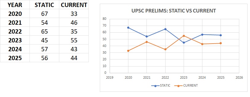 The conclusion of my analysis is that this years’ prelims will be more on static lines than current as there is a clear alternate-year trend.